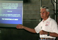 Grayson County for beginners, then the 4-day advanced formation clinic at Grayson hosted by Wayne Collins with formal advanced briefing by Mike Babler, John "Weebs" Wiebener and Gene Keyt. A milestone occurred with Mike Babler being approved as